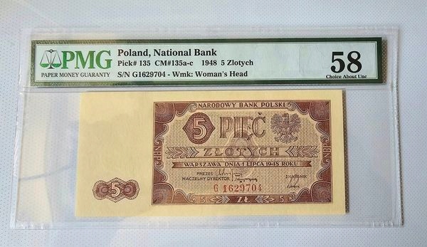 PLN 5 - 1 июля 1948 г. R / PMG 58 Series G