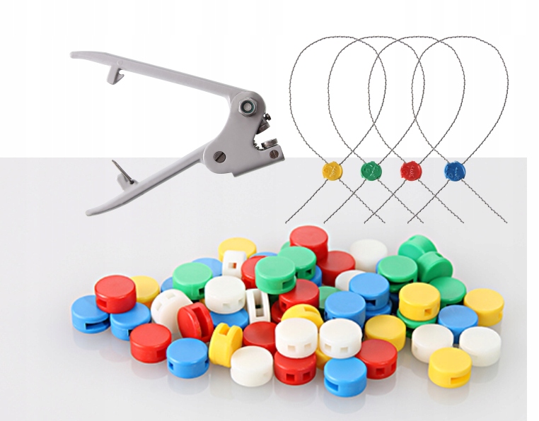 Пломбы NOTOX упакованы комплектами по 1000 штук и доступны в следующих цветах: красный, желтый, синий