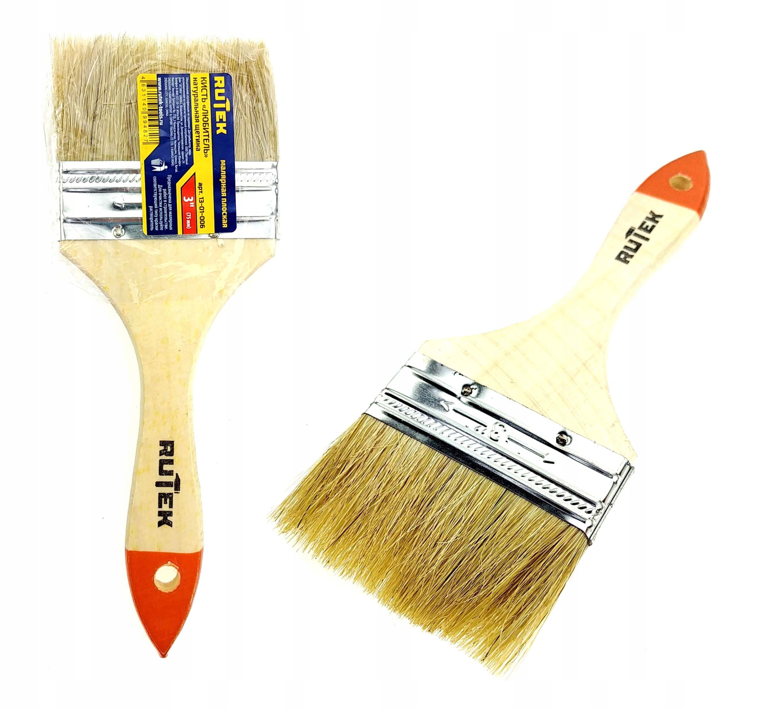 Плоска щітка 3 "75 мм з натуральною щетиною Rutek