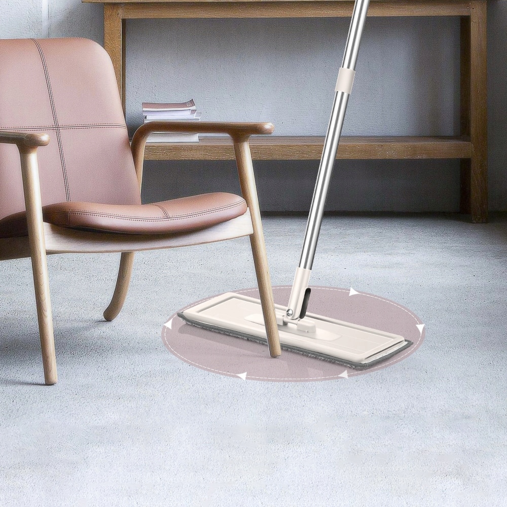 Использовать классическую швабру с ведром для уборки чрезвычайно просто. Просто поверните палку для швабры, затем закрутите ее до конца, удерживающего швабру из микрофибры, смочите ее водой и слейте излишки. Теперь с помощью влажной швабры вы можете протирать любые типы полов, не наклоняясь. Однако не забывайте осторожно нажимать на нее при мытье полов.
