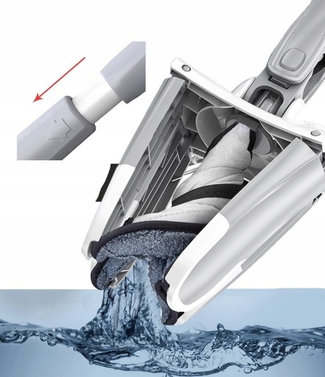 Функция сжатия проста в использовании. Удерживая швабру горизонтально, просто переместите ручку вперед. Ручка, отмеченная стрелкой, в каком направлении двигаться.