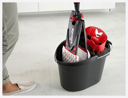 - Швабра помещается в стандартное ведро с отжимом Ultramax, что позволяет отжимать швабру, не намочив и не испачкав руки
