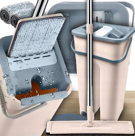 ПЛОСКАЯ ШВАБРА С НАБОРОМ СКРЕЗКИ С ДВОЙНЫМ ВЕДРОМ + ВСТАВКИ ИЗ МИКРОФИБРЫ