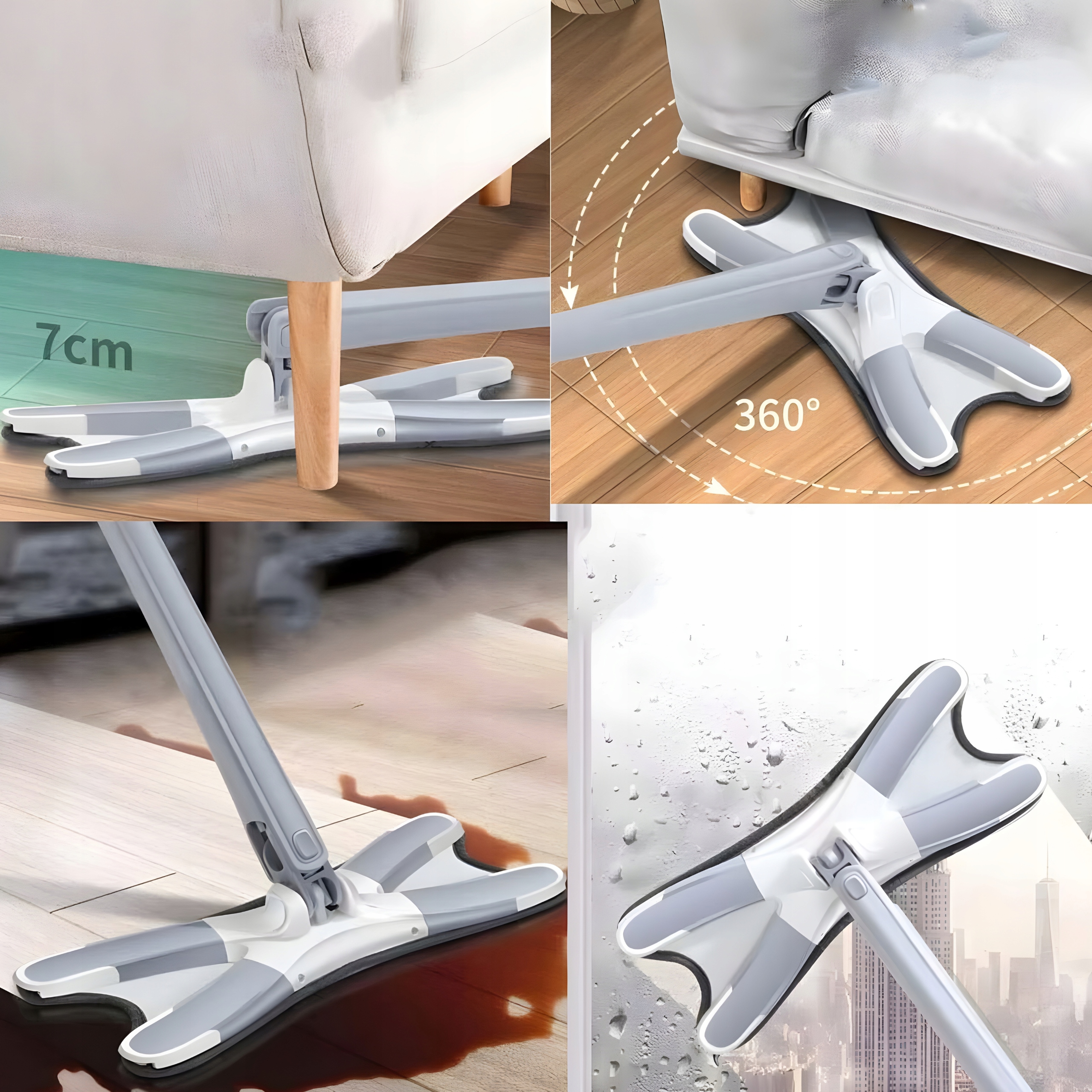 ✅ Ротарие 360 ° b> облегчает достижение уголков и лифтов, благодаря которой чистка является более эффективной и менее утомительной. Протирать. Универсальное использование означает, что швабка подходит для различных поверхностей, таких как панели, плитки или парке