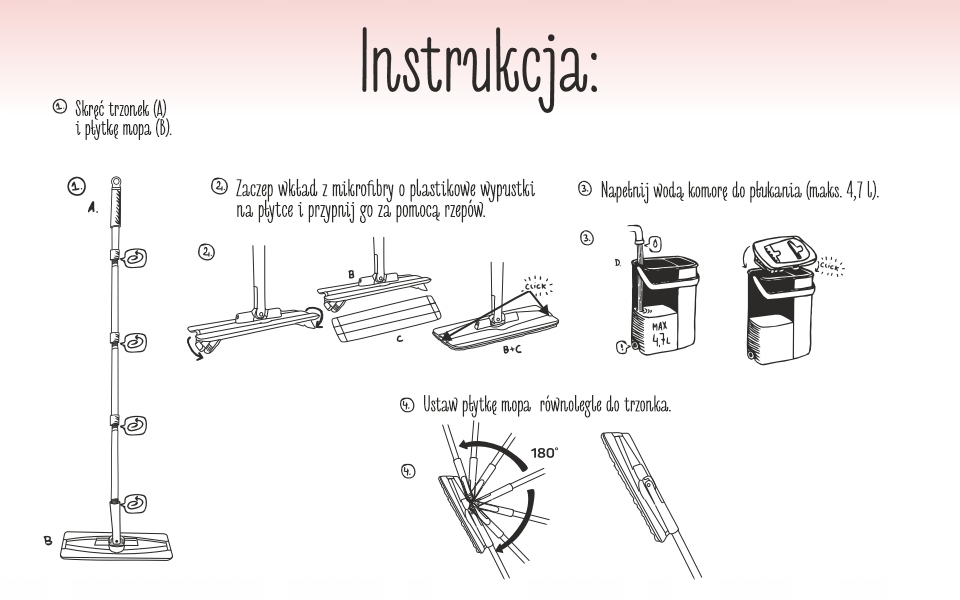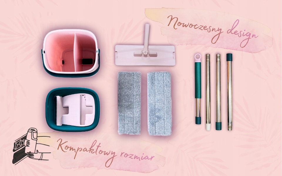 ПЛОСКА ЗРУЧНА ШВАБРА + ПОДВІЙНЕ ВІДРО З КВІРЕРОМ + ТЕЛЕСКОПОВА ПАЛИЦЯ + ЗАПАСНА