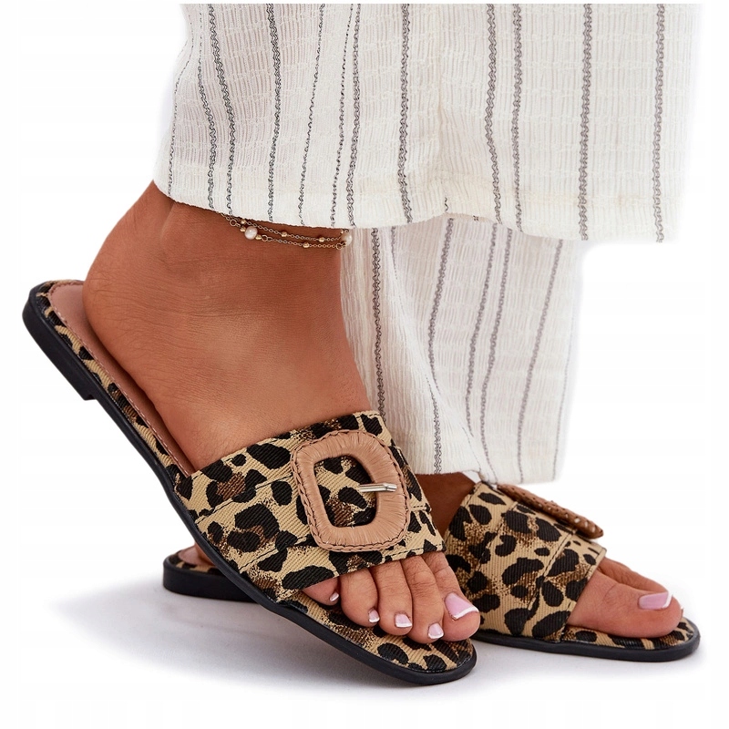 Женские шлепанцы с плоскими хлебами с декоративным зажимом, легкий леопард