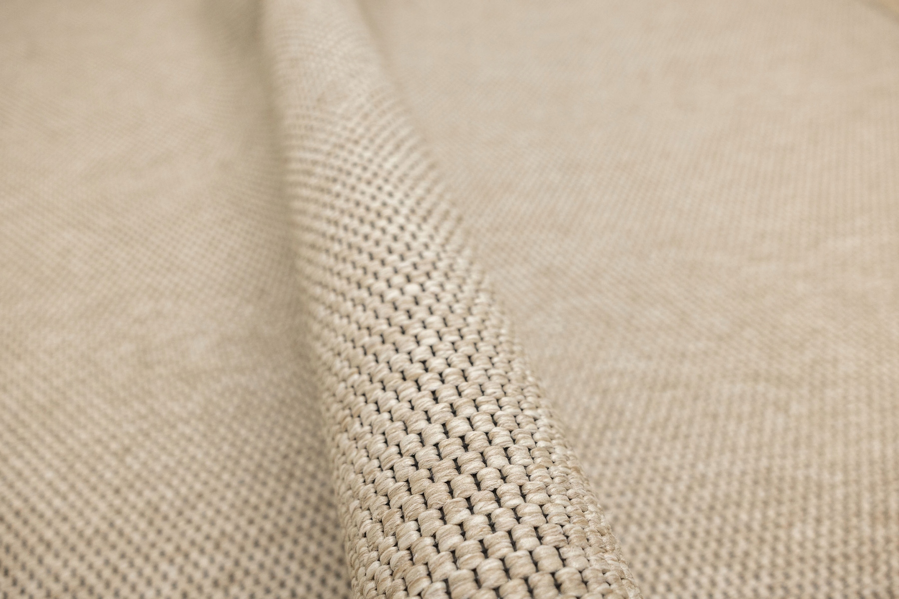 Ковер из плоского лайнера -это комбинация сырого, естественного стиля и практичности. Его плоское «кирпичное» плетение придает поверхности тонкую текстуру, которая хорошо вписывается в минималистские интерьеры, вдохновленные природой. Руны содержат оттенки бежевого и сливок. Ковер украшен видимым плетением, напоминающим бамбуковый коврик или траву.