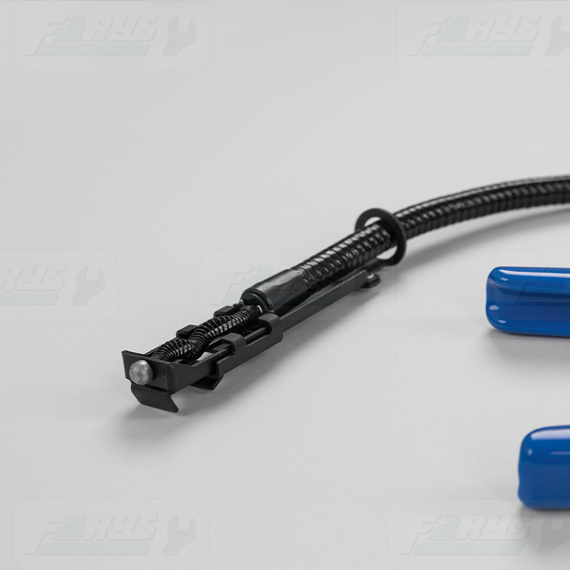 Специализированные плоскогубцы для зажимных полос на гибких линиях топлива, воды и масла. В броской части Pliers специально профилированные челюсти, встроенные на сталь -шнур в металлическую обмотку, благодаря которой инструмент можно использовать в труднодоступных местах. Хорошим преимуществом металлической обмотки является то, что они более жесткие, что облегчает работу.