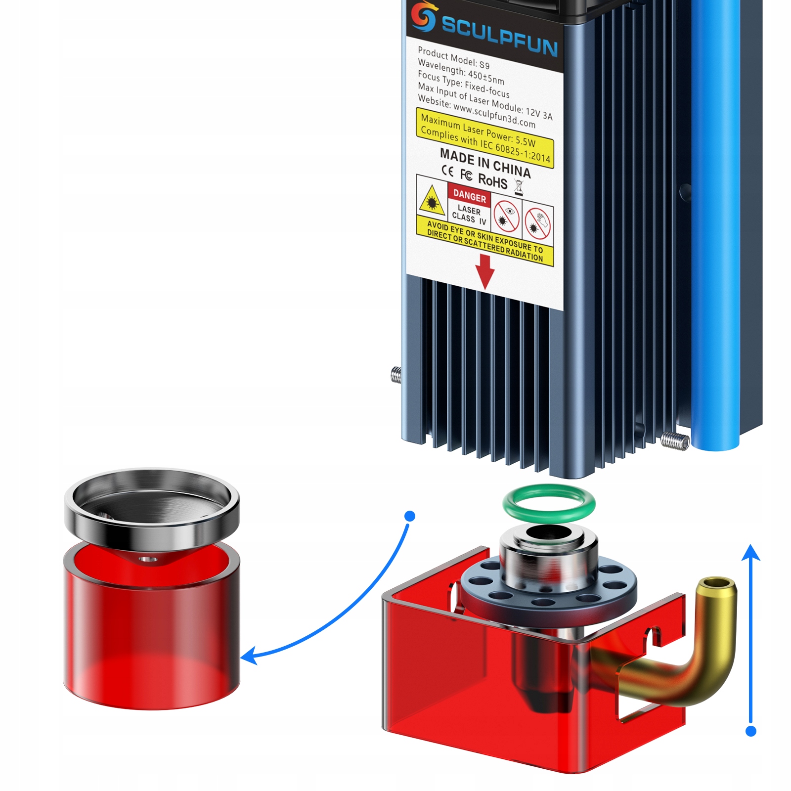 1. Официальная авиационная поддержка Sculpfun S9: Это стандартное сопло воздушного опор S9, разработанное Sculpfun, это полностью металлический дизайн и идеально соответствует лазеру S9. Установка очень проста и занимает всего несколько минут.