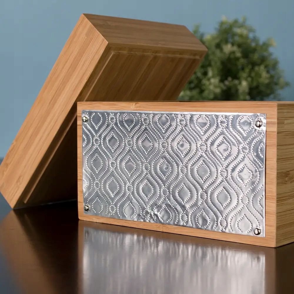 С помощью инструмента для тиснения можно создавать уникальные узоры на бумаге, фольге или тонких пластинах. Элементы, изготовленные таким образом, придадут вашим проектам неповторимый характер. Инструмент для тиснения продается отдельно.
