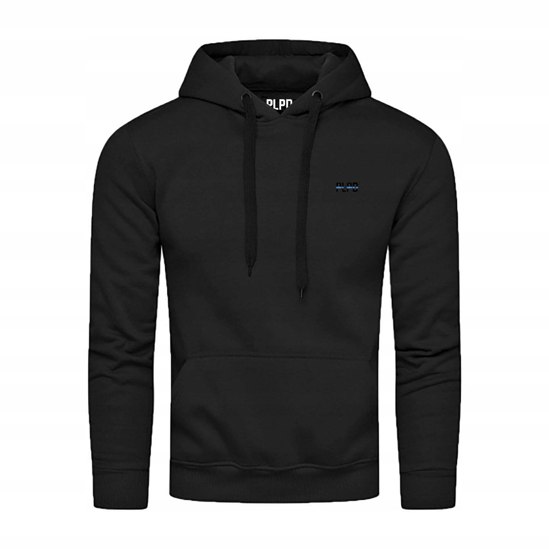 Толстовка PLPD Line в черной с черной вышивкой Loga PLPD с тонкой синей линией.