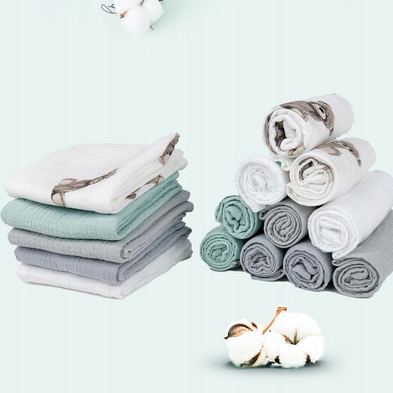 10 шт.30х30 см, по 2 шт каждого цвета: белый, белый с мишкой, мятный, сизый, светло-серый