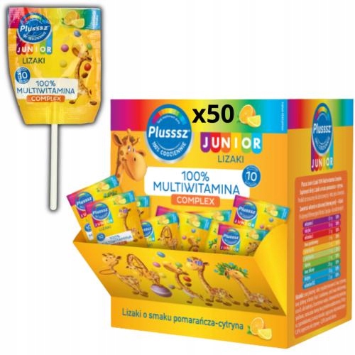 PLUSSSZ JUNIOR МУЛЬТИВИТАМИННЫЕ ВИТАМИННЫЕ ЛОЛЛИ - ФРУКТОВЫЕ 50 ШТ / 11/2025