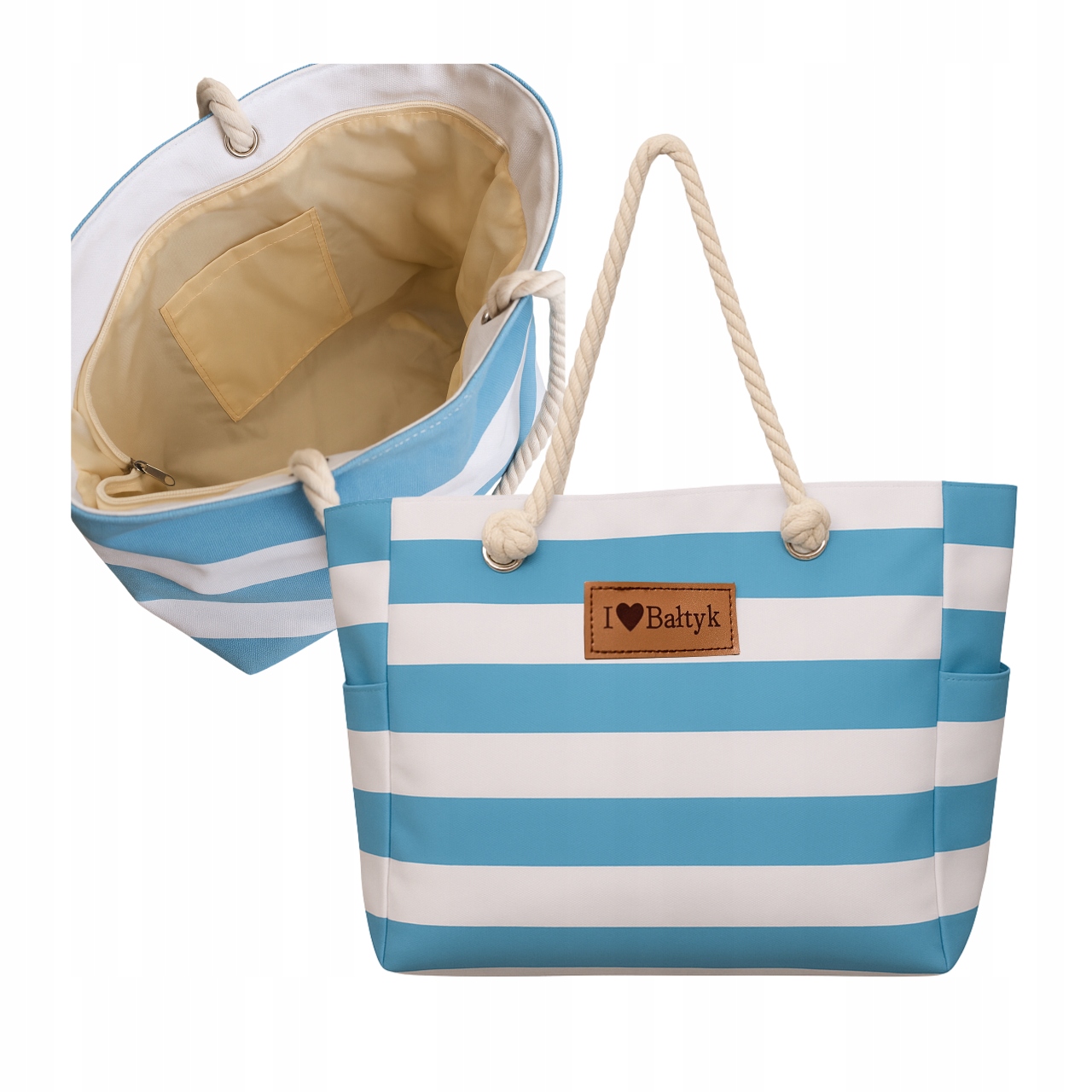 ПЛЯЖНАЯ СУМКА НА МОЛНИИ В ПОЛОСКИ XXL СИНИЕ БОКОВЫЕ КАРМАНЫ МОДНЫЙ УЗОР