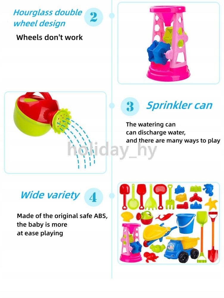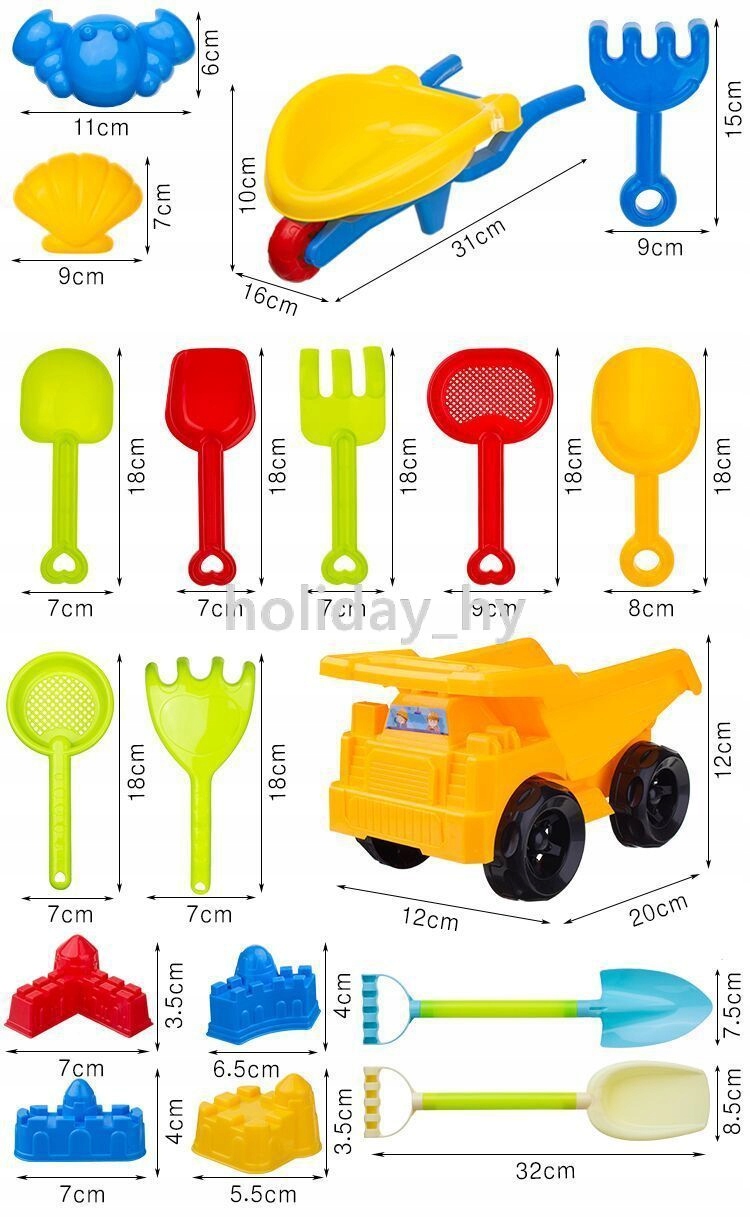 ПЛЯЖНОЕ РАЗВЛЕЧЕНИЕ «ВСЕ В ОДНОМ» — в комплект входят большие лопаты для песка, квадроцикл, бутылка с водой, большие песочные часы, инженерный автомобиль, большое пляжное ведро с удобной ручкой для переноски. Указанные выше комбинированные пакеты являются дополнительными. Все популярные игрушки для песочницы готовы, давайте достанем их и насладимся летними забавами.