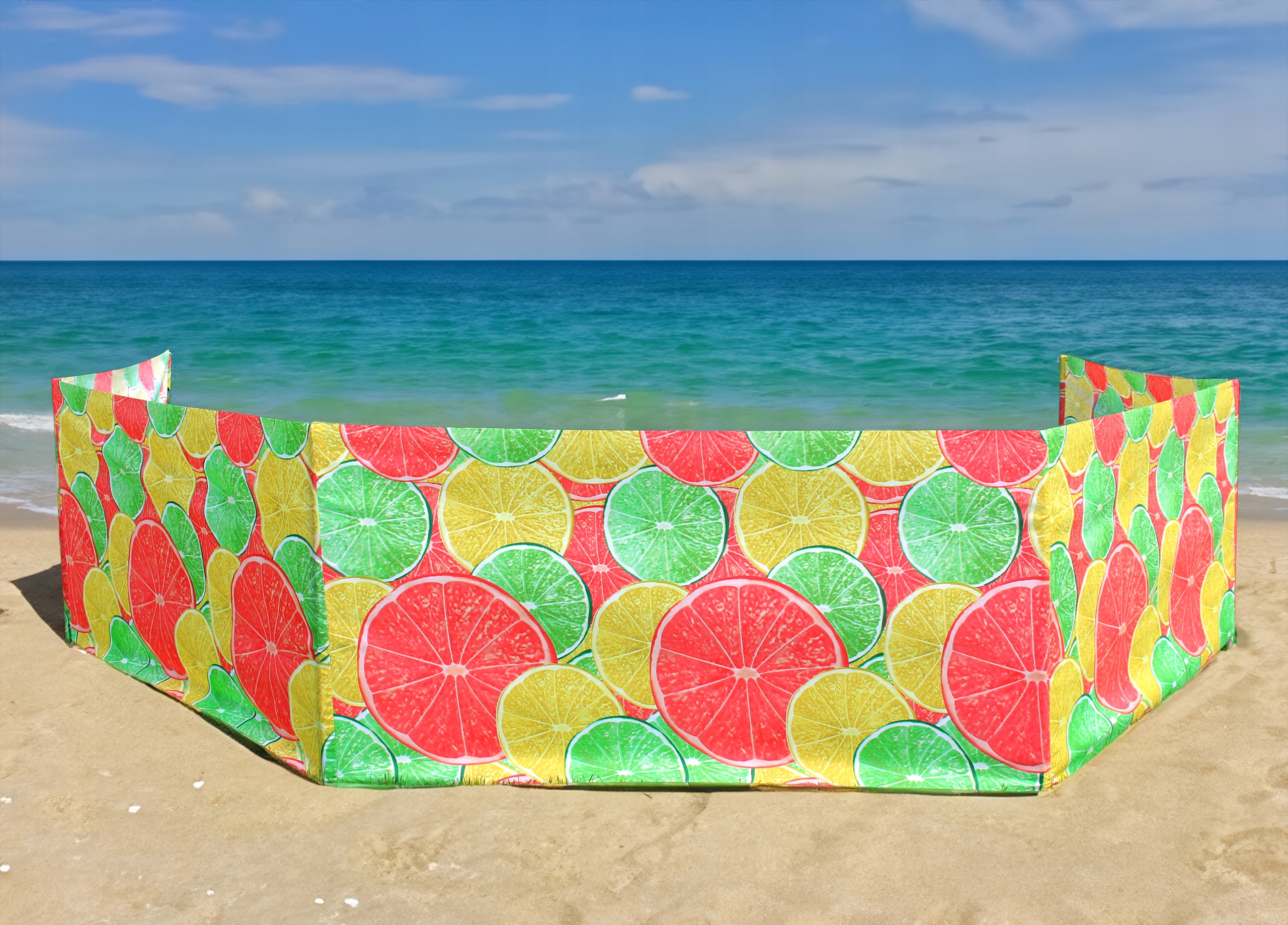 пляжный экран , который защищает от ветра, спящего песка и позволяет вам расслабиться на пляже.