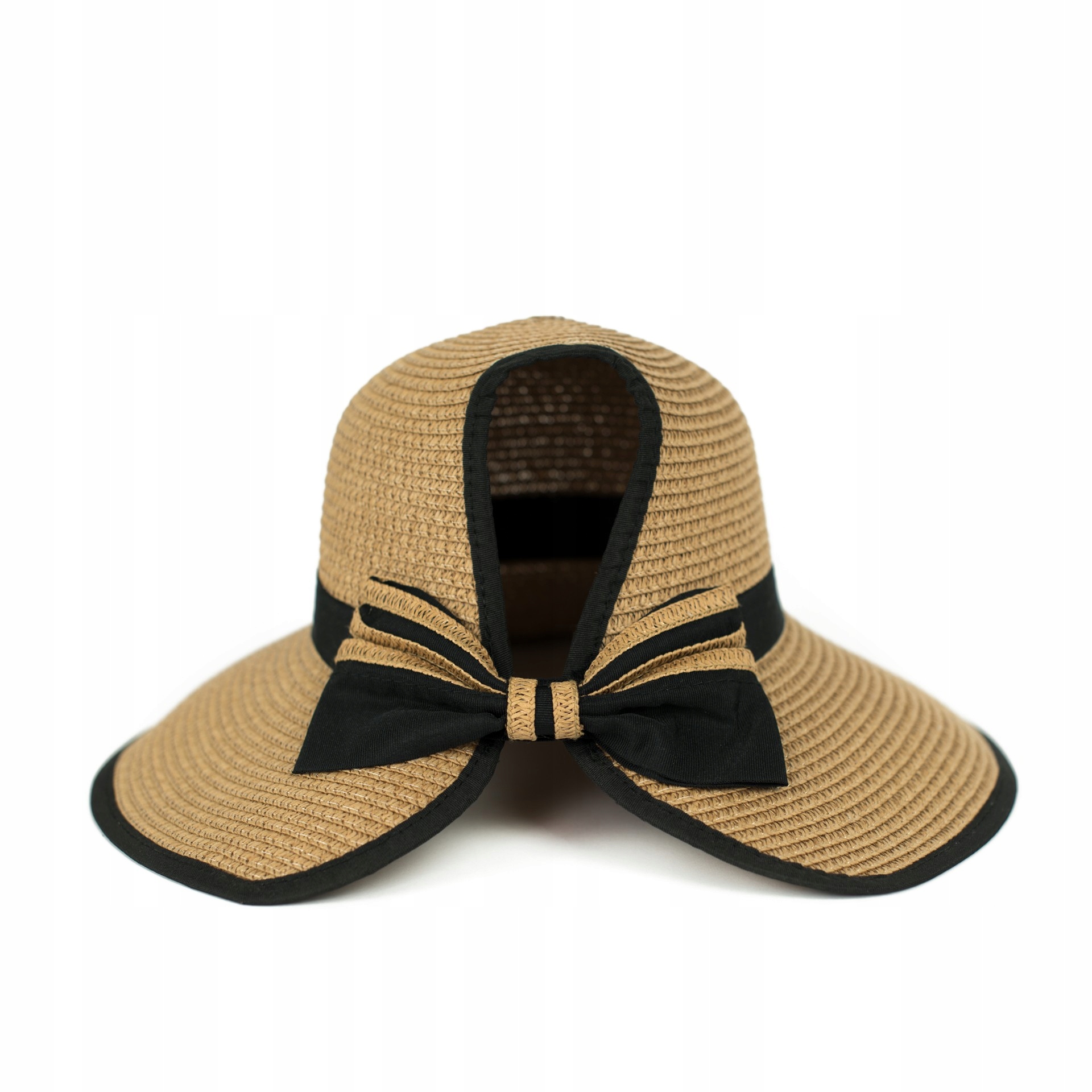 Сзади есть специальное отверстие для хвостика или пучка. и декоративный бантик, придающий девичье очарование.
