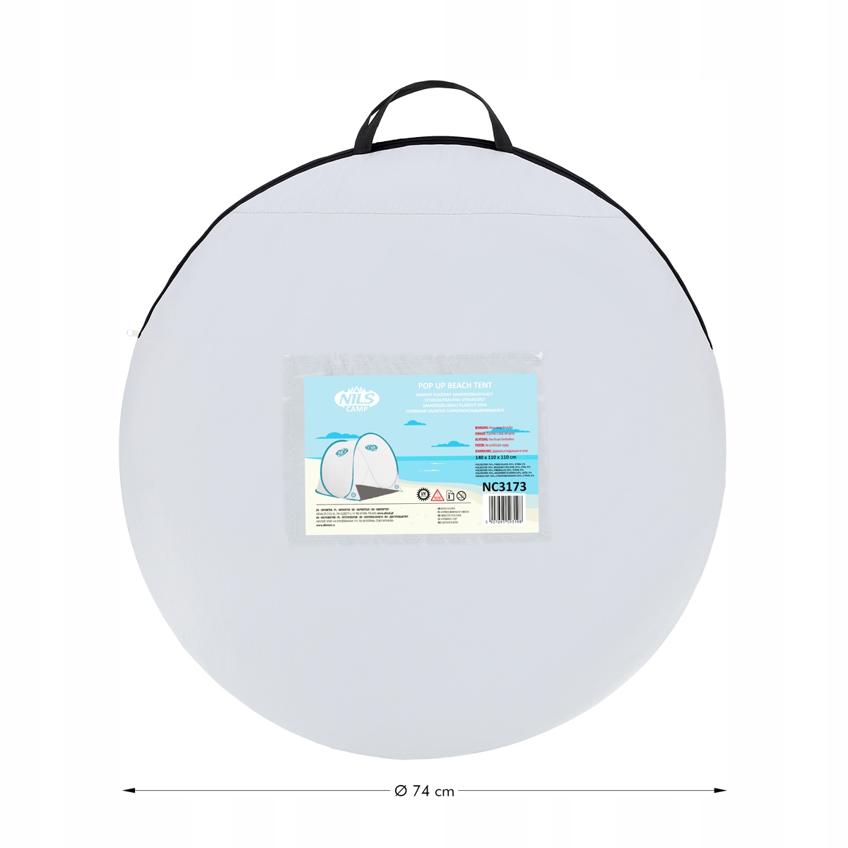 Это самоскладывающаяся пляжная палатка. Его размеры гарантируют удобство и комфорт использования. Главное преимущество модели NC3173 в том, что она сама раскладывается. Просто выньте его из чехла и положите на землю. Через несколько секунд палатка готова. В результате мы можем быстро предаться блаженному отдыху. Благодаря входящим в комплект колышкам изделие не будет смещаться и нет риска его унести ветром. Дополнительно в палатке есть специальные карманы, которые можно наполнить песком. Они также предназначены для предотвращения нежелательного перемещения палатки.
