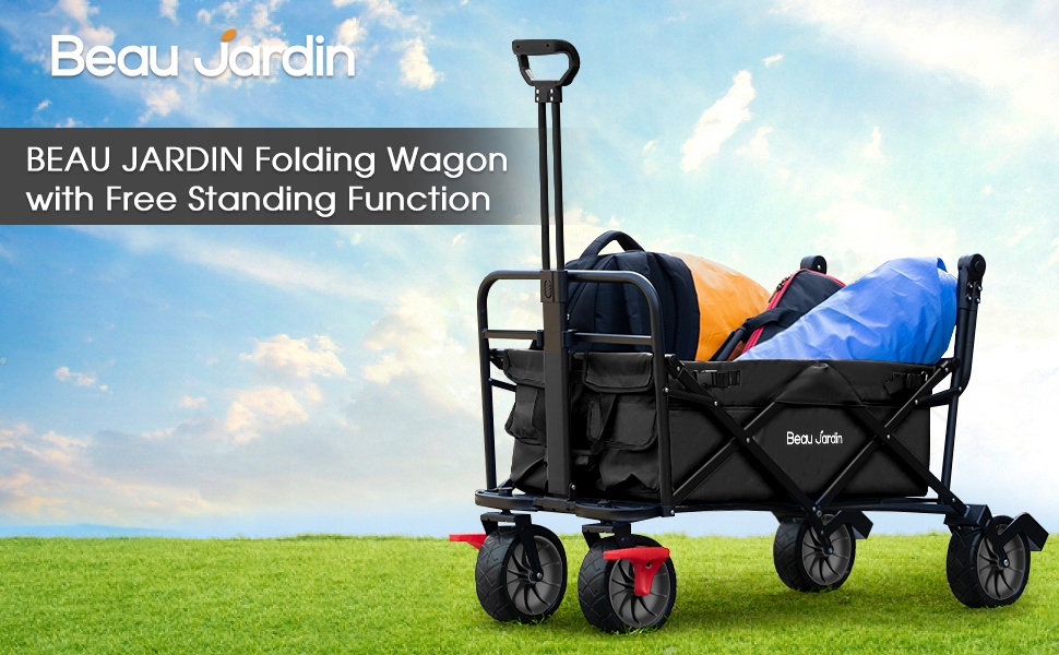 BEAU JARDIN Складная тележка с тормозом, транспортная тележка, отдельно стоящая, с регулируемыми выдвижными ручками, грузоподъемность до 80 кг, легко переносится, подходит для детей - черный