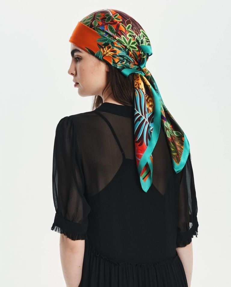 - большие размеры шарфа позволяют модно обернуть его вокруг шеи, свободно спустить или накинуть на плечи и спину.