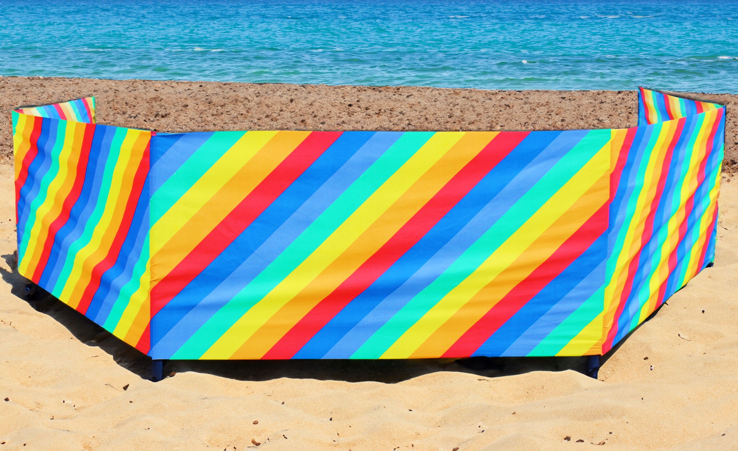 Пляжный экран, который защищает от ветра и падающего песка и позволяет расслабиться на пляже.