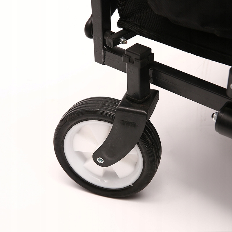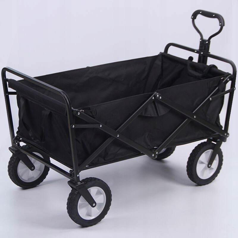 Коляска легко переносит до 80-90 кг груза. Благодаря большим пластиковым колесам он не боится песка и грязи. Его сборка занимает всего минуту, поэтому не возникает проблем с длительным складыванием или раскладыванием, а также с местом для хранения. Он компактный и прочный.