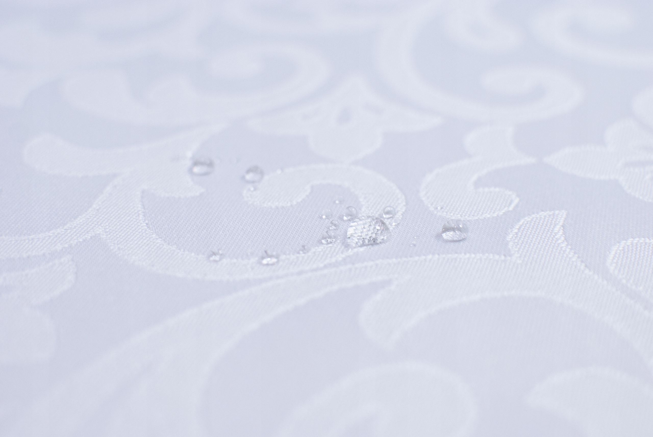 Очень густая, достойная скатерть в течение многих лет, дублировать дубликат с устойчивой к окрашиванию Hi-Tech. Жаккард. Стенка украшена белой обрезкой. виды отделки.