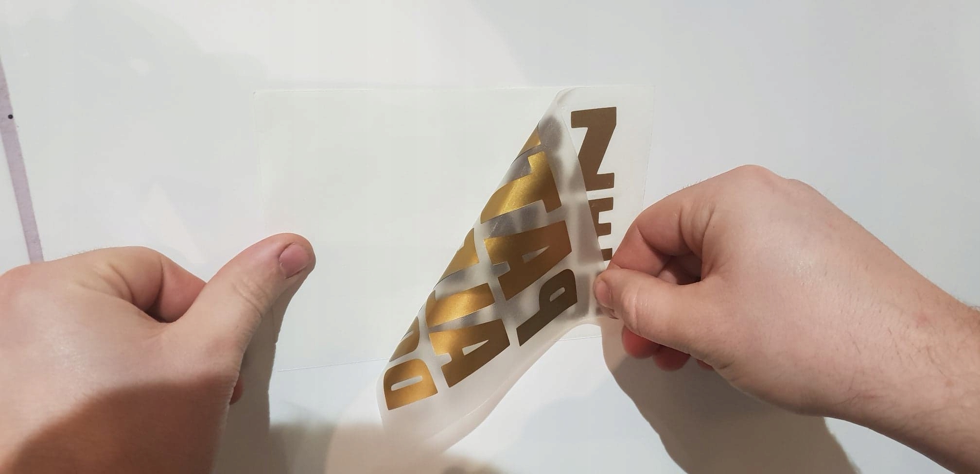 Наклейка защищена транспортной фольгой , которая облегчает метод монтажа и передачи на выбранную поверхность.