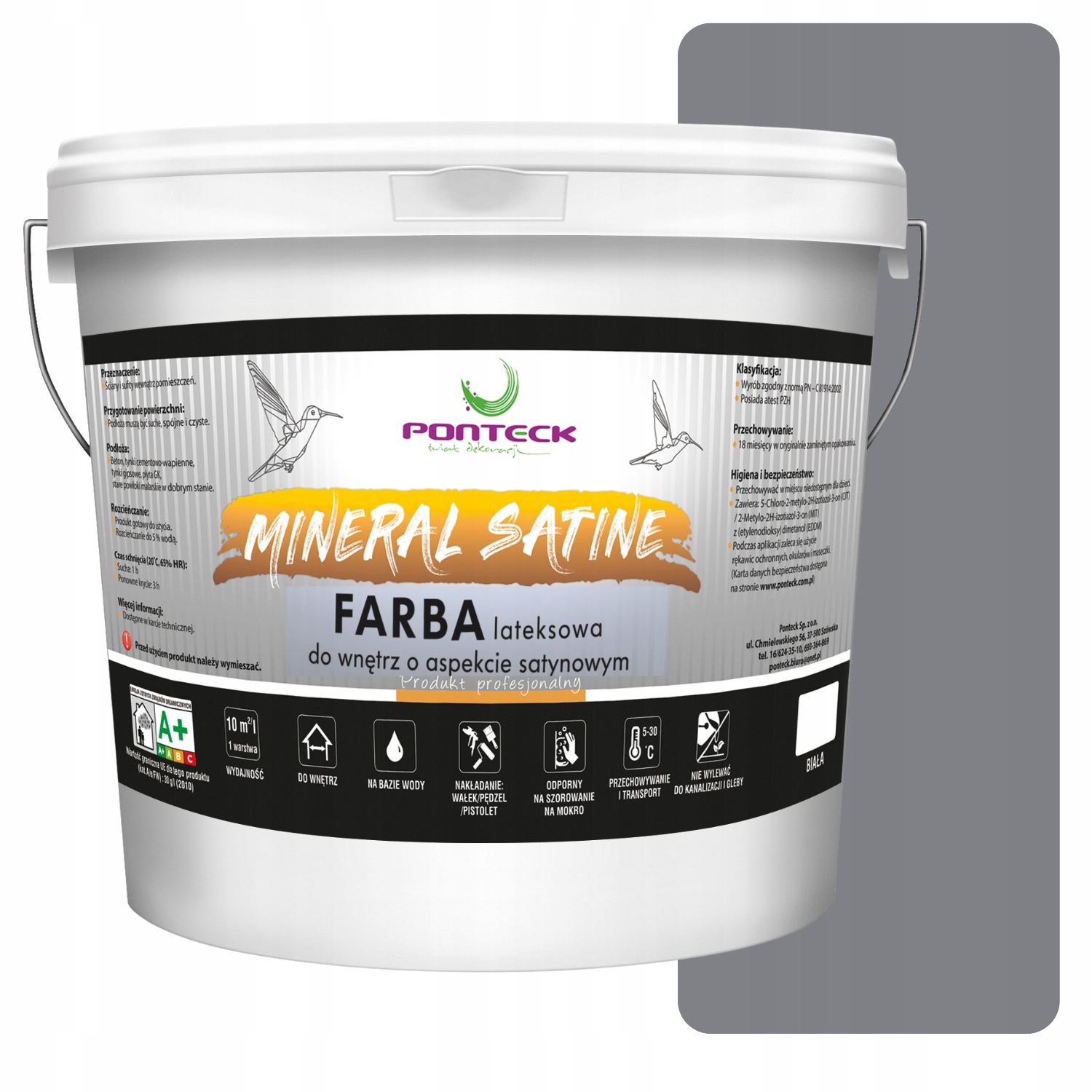 ЛАТЕКСНАЯ КРАСКА ДЛЯ НАСТЕН СТАЛЬ СЕРАЯ, СТАЛЬНАЯ СЕРАЯ, 2,5 Л PONTECK.