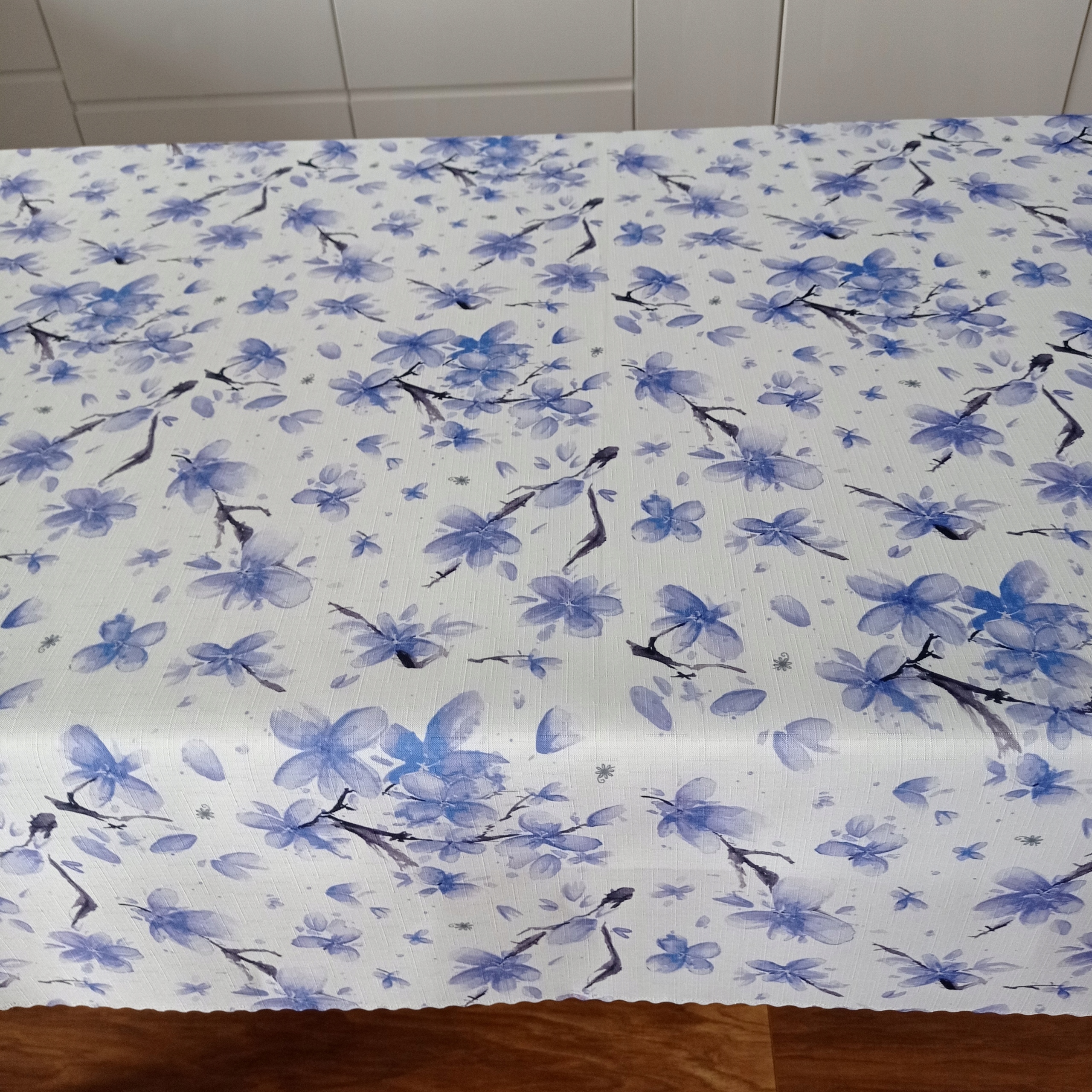 Скатерть практически идентичная льняной ткани с приглушенными, сиреневыми цветами для комнаты, для лавочки, для сада, для террасы, для кухни . Очень элегантный.