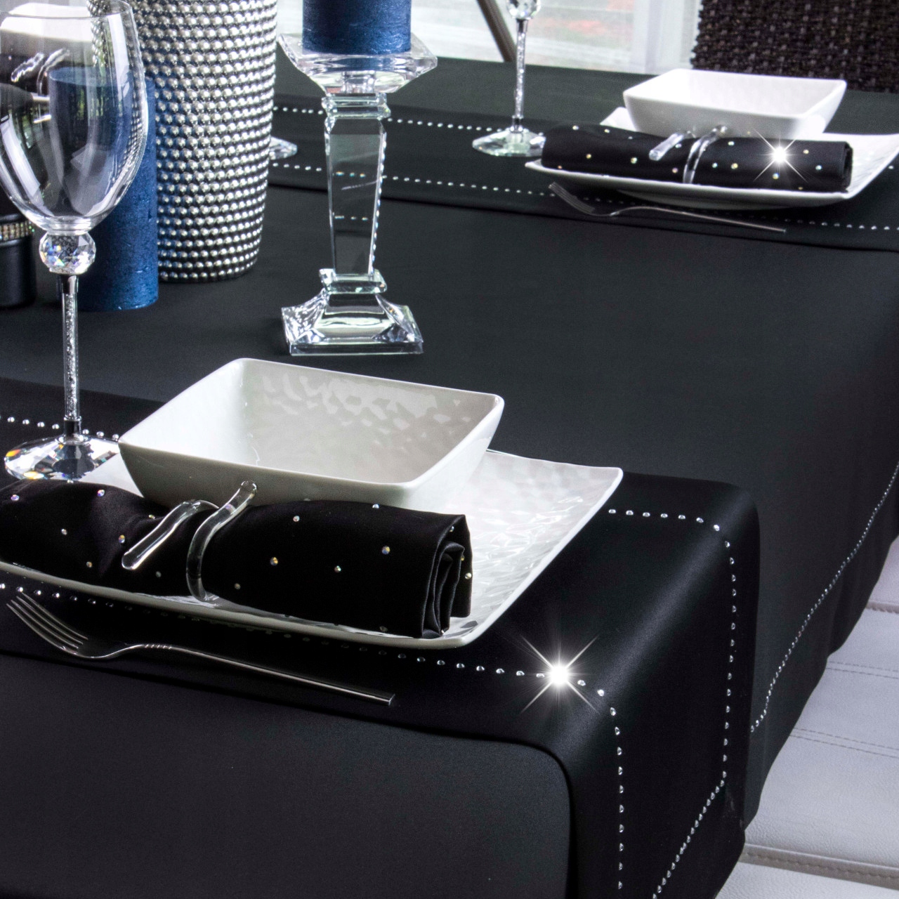 GLAMOUR — уникальная коллекция атласных скатертей, ремней и скатертей, отделанных декоративной полосой шириной 7 см, по подолу украшены современным узором из металла, серебряными стразами. Скатерти доступны во многих цветах и размерах (доступны на других аукционах), поэтому подобрать их не составит труда.