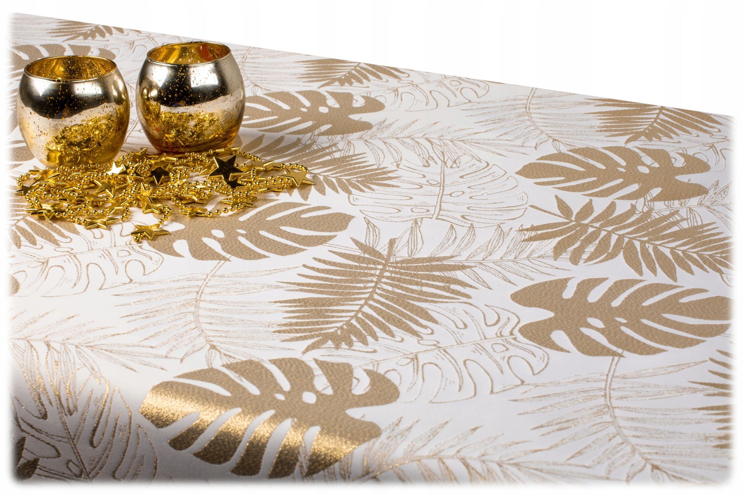 Скатерть ДВУСТОРОННЯЯ грязеотталкивающая 80х80 см - МОНСТЕРА золото
