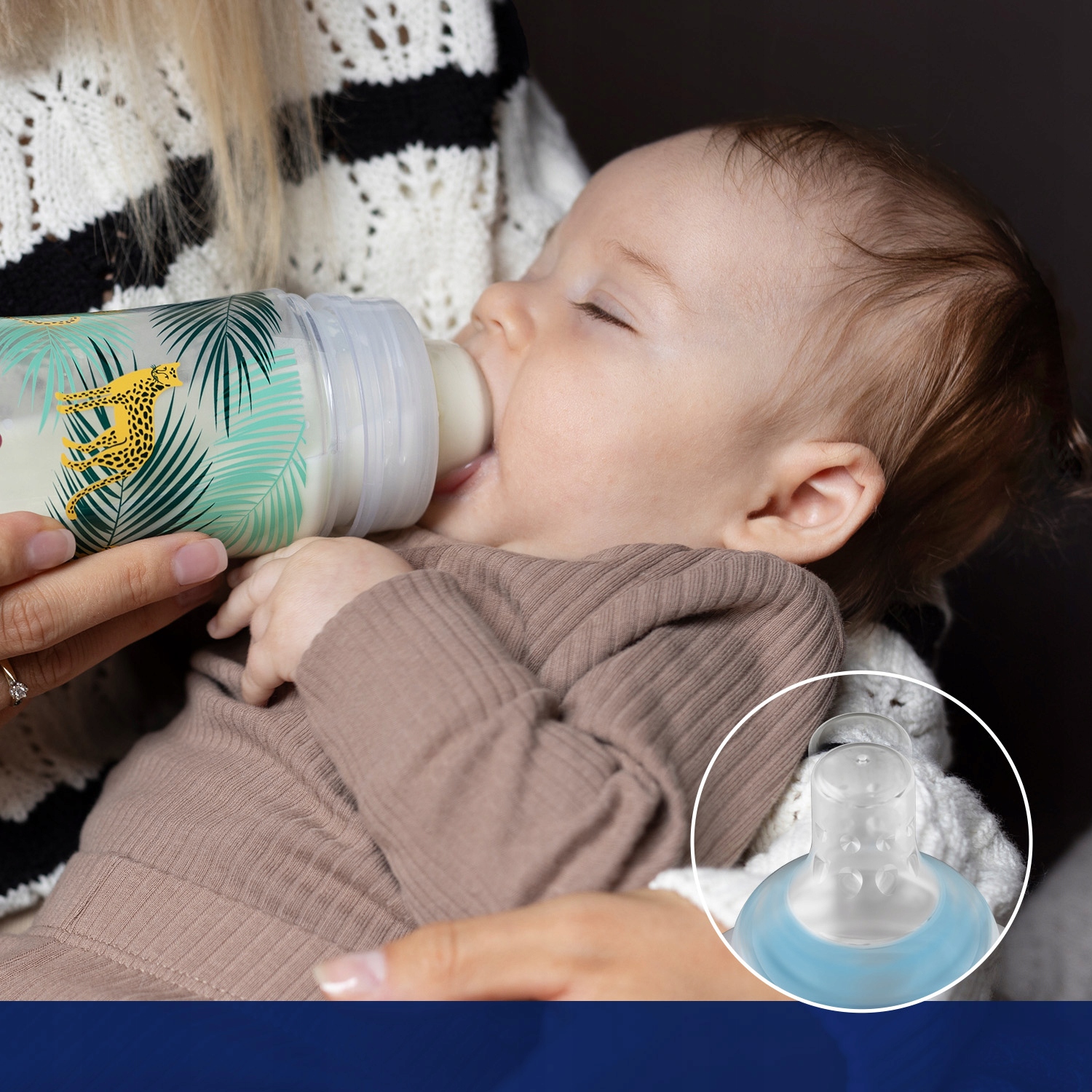 Бутылочка для кормления сцеженным грудным молоком. Безопасно для ребенка, находящегося на грудном вскармливании, поскольку не нарушает сосательный рефлекс и не мешает естественному кормлению. Оснащена профессиональной динамической соской-пустышкой®, изготовленной из гетерогенных слоев силикона (тонкий, динамичный, удлиняющийся кончик и твердое, профилированное основание). Благодаря этому от ребенка требуется активное сосание: сильная работа мышц губ и языка.
