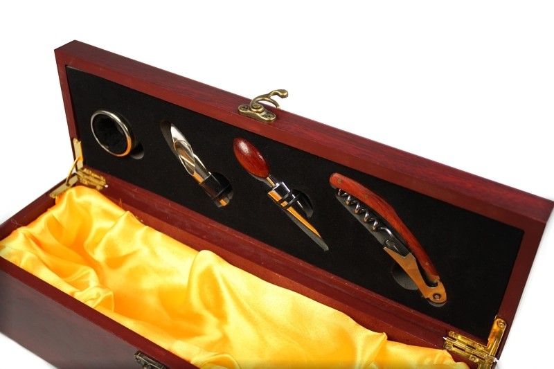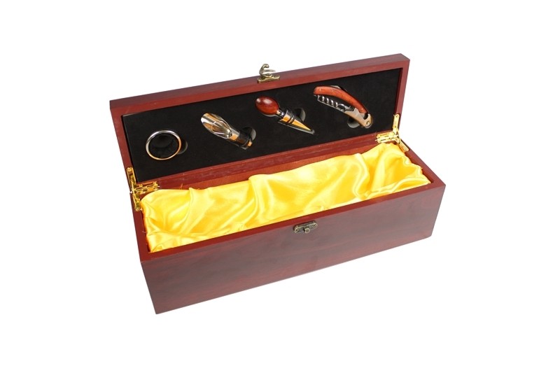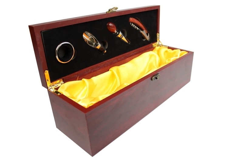 Представляем Вам держатель для бутылок с набором винных аксессуаров в коробке. Боттлер вмещает одну бутылку вина. Стенки разливочной машины закреплены пенопластом, обернутым бархатистым желтым пенопластом, который прекрасно смягчает содержимое коробки и защищает его от повреждений.