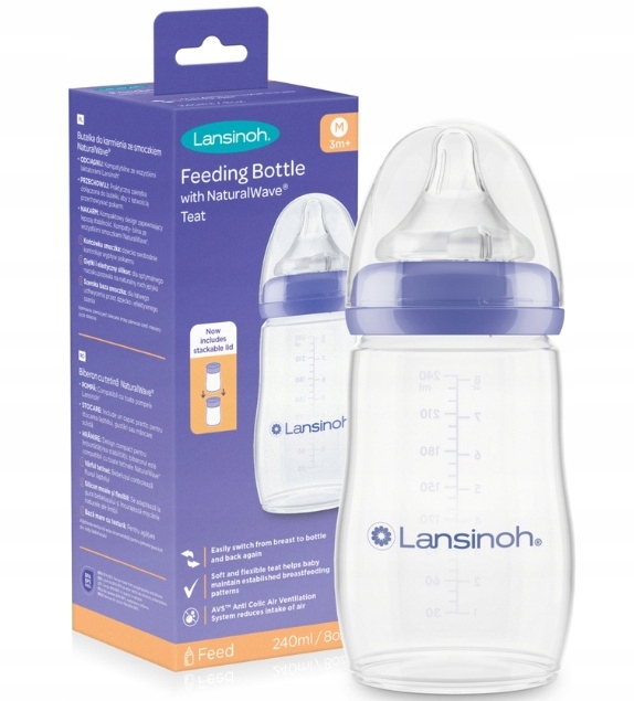 Бутылочка для кормления 240 мл + соска среднего потока LANSINOH