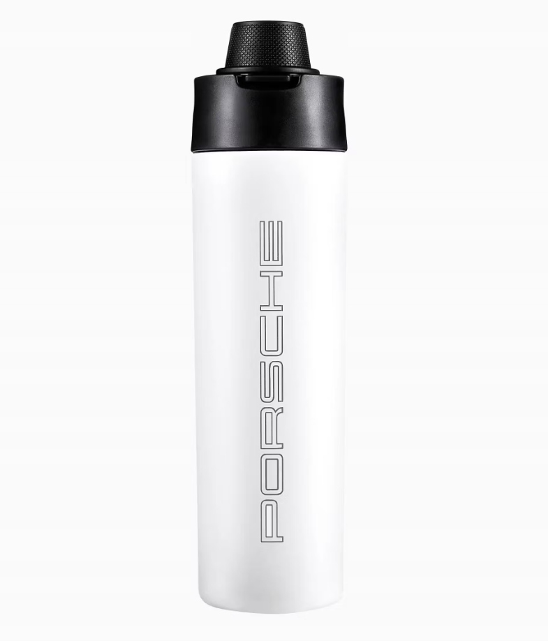 Термальная бутылка Porsche с двойными стенками и ручкой сохраняет температуру горячих и холодных напитков и полностью герметична. Белое порошковое покрытие и выгравированная лазером надпись «PORSCHE» придают ему элегантный, неподвластный времени вид. Конструкция замка крышки основана на кнопке режима движения на рулевом колесе Porsche.