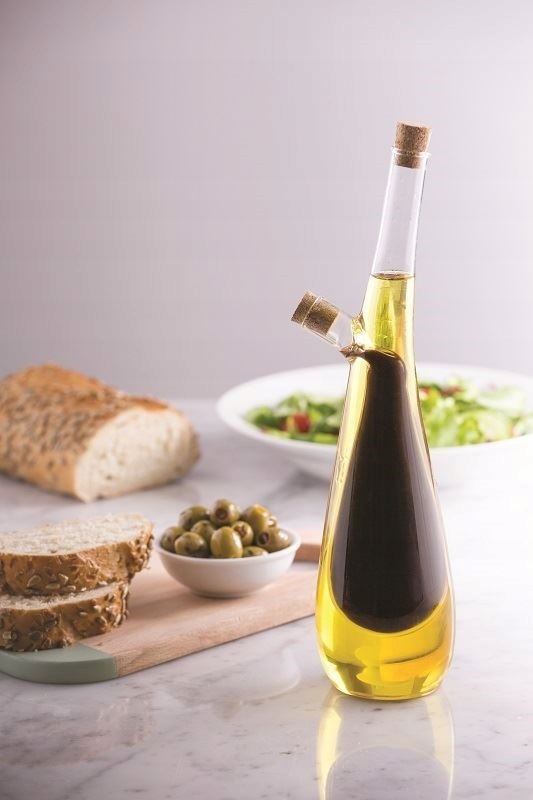 - оригинальная форма, объединяющая 2 сосуда в один: бутыль для оливкового масла емкостью 0,25 л и емкость для уксуса емкостью 0,1 л,