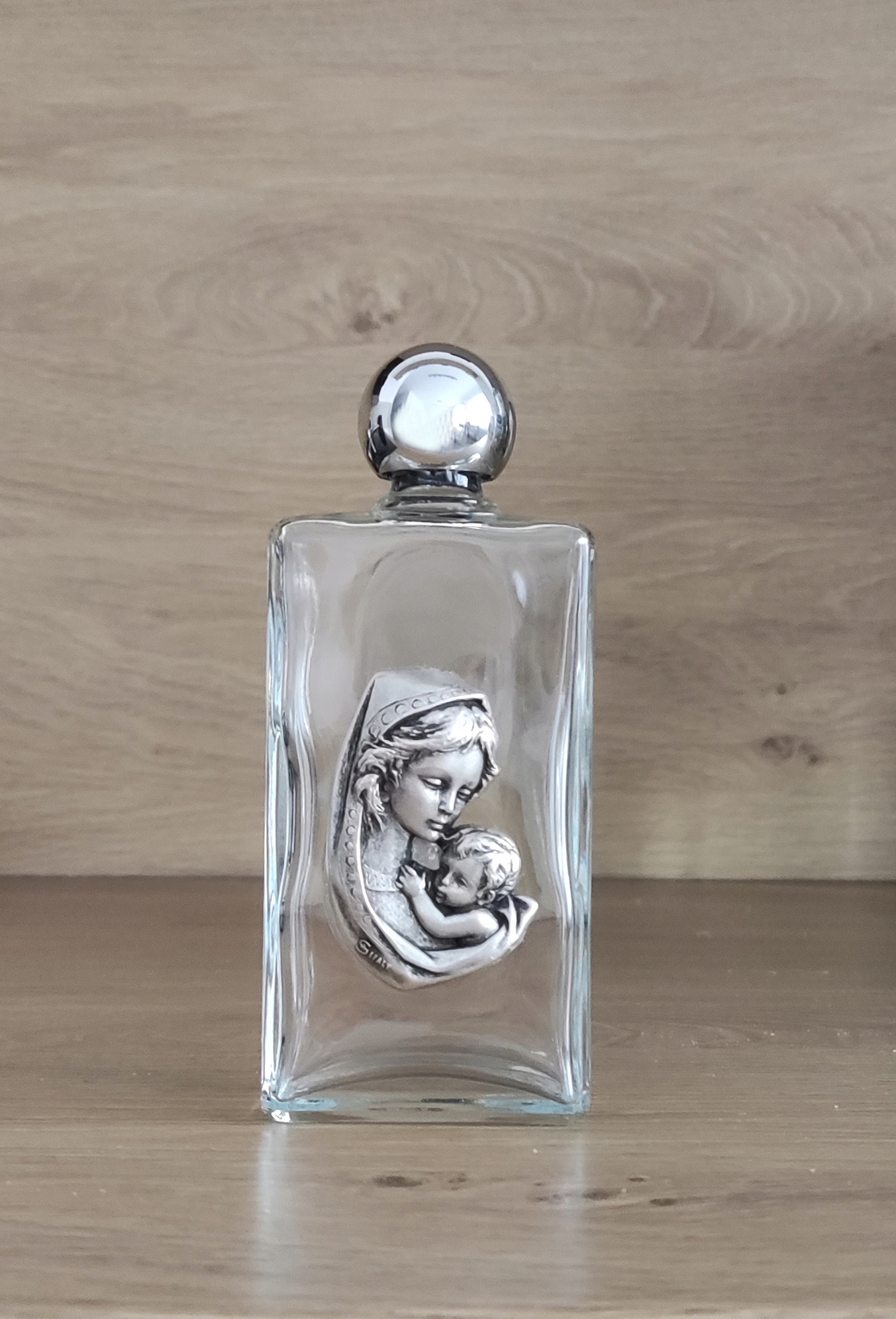 ✅ Предметом аукциона является стеклянная бутылка для воды с изображением Девы Марии с ребенком.