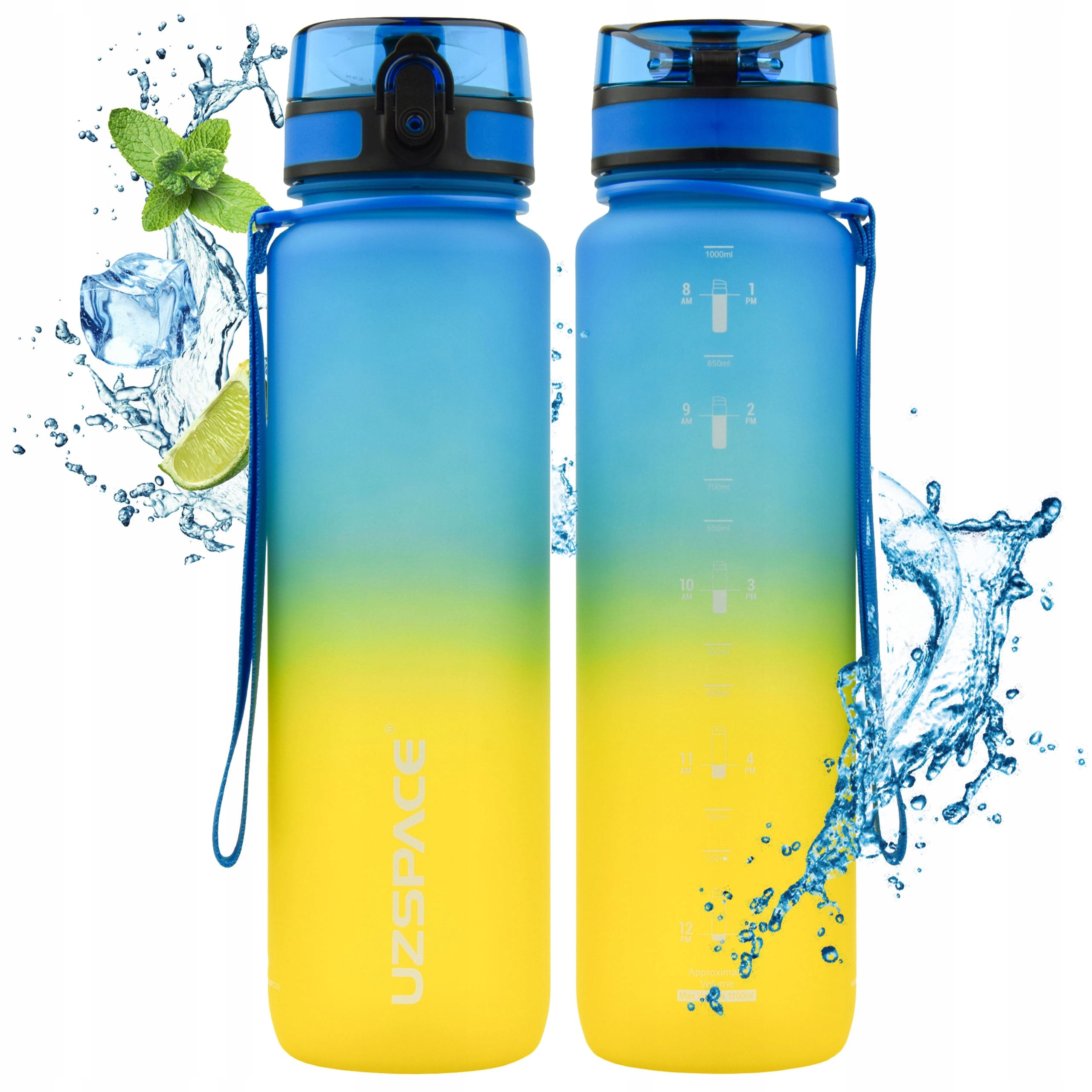 Спортивная бутылка для воды объемом 1 л из тритана. Бутылка для мотивационных тренировок с мерным стаканчиком, сине-желтая