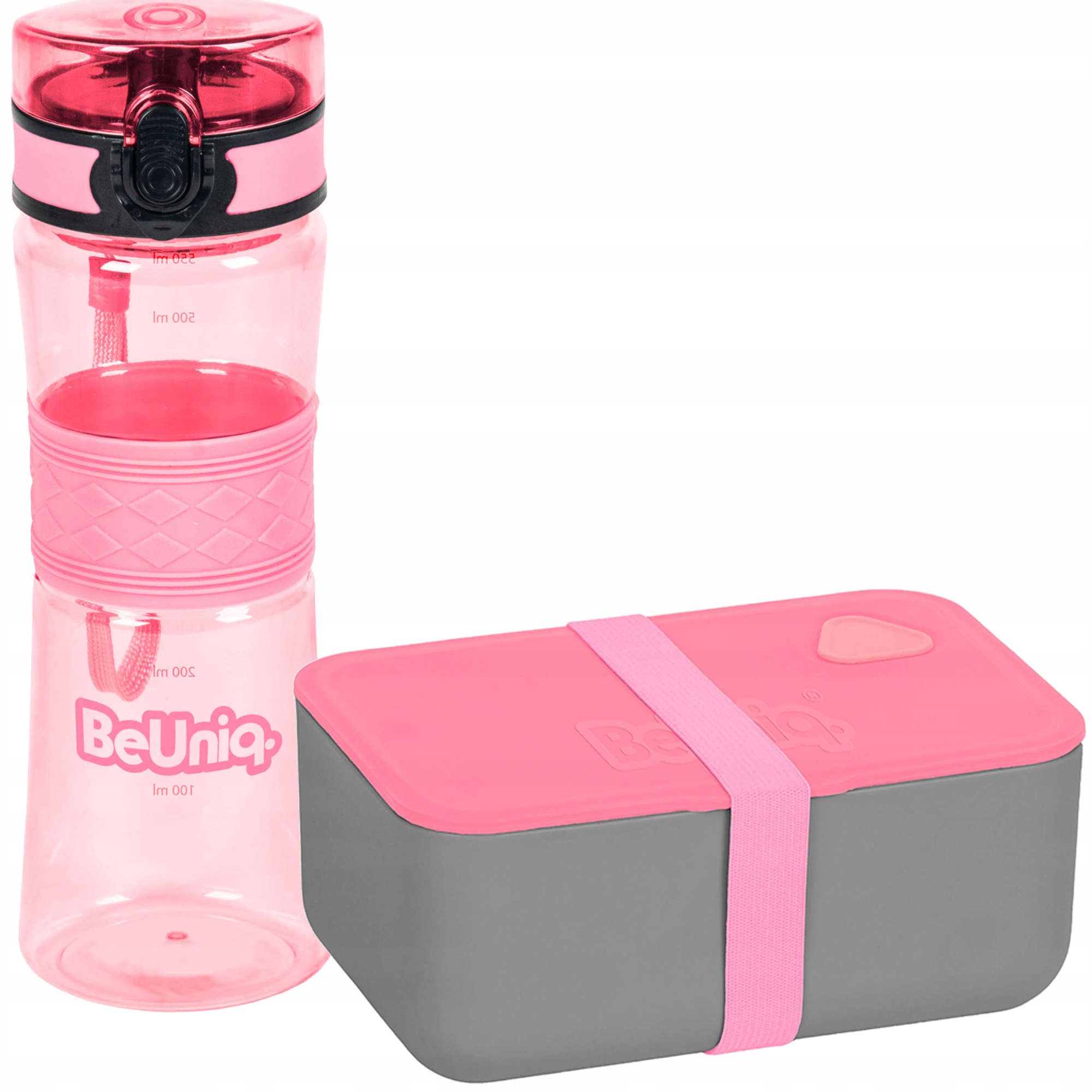 Коробка для завтрака выполнена в серо-розовом цвете, на крышке тисненый логотип коллекции BeUniq.
