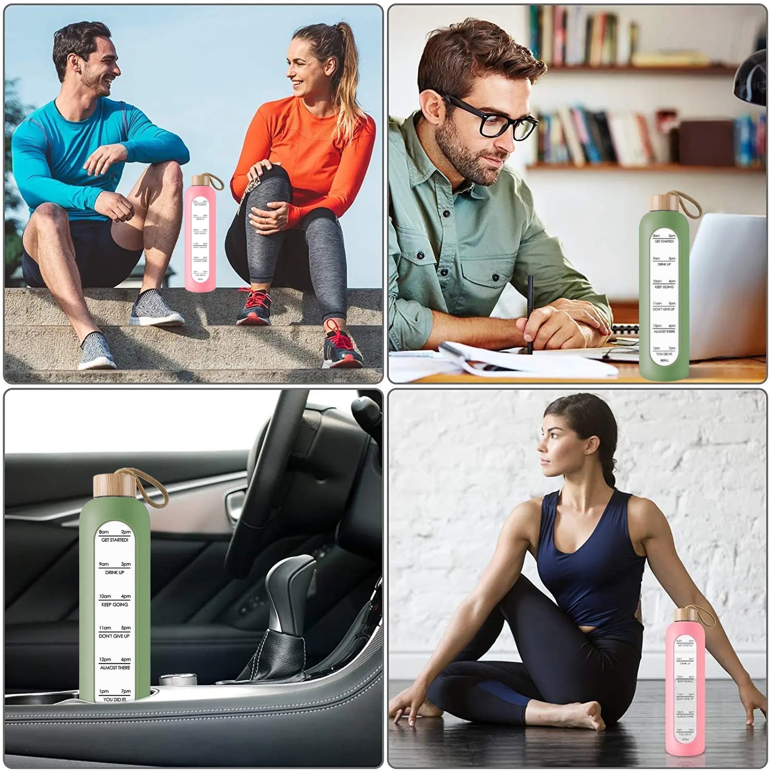 СТЕКЛЯННАЯ БУТЫЛКА ДЛЯ ВОДЫ В КОРПУСЕ, ПИТЬЕВАЯ, СПОРТИВНАЯ, НЕТЕЧНАЯ
