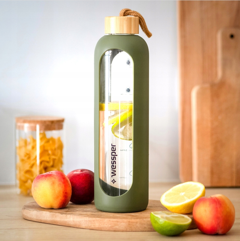 СТЕКЛЯННАЯ БУТЫЛКА ДЛЯ ВОДЫ БУТЫЛКА С КОРПУСОМ 1000мл 1л WESSPER ACTIVEMAX