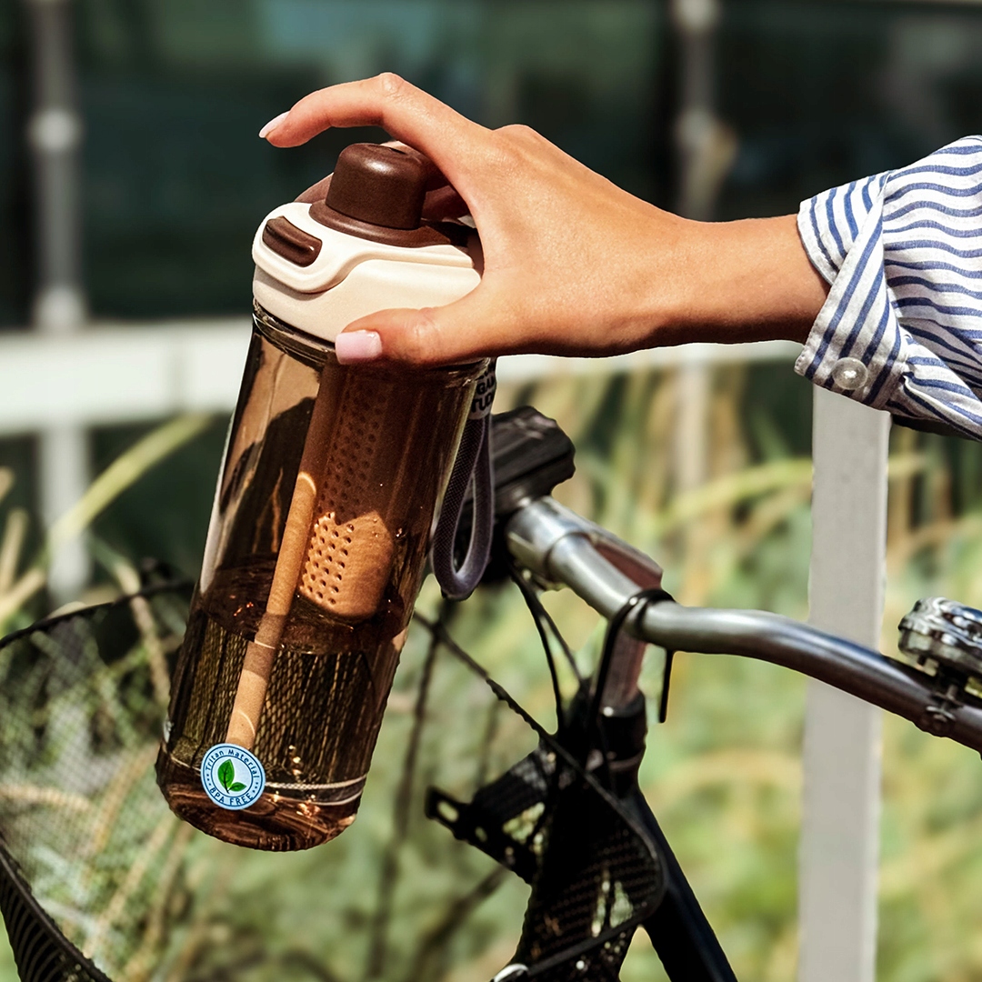 · Величественная спортивная бутылка также оснащена соломенной , благодаря которой вы можете пить комфортно, не опрокидывая весь контент. Если вы предпочитаете традиционные решения, откройте клапан с кнопкой и выпейте прямо из мундштука . Бутылка с водой Zoya также имеет съемный поводчик на запястье для легкой передачи бутылки.
