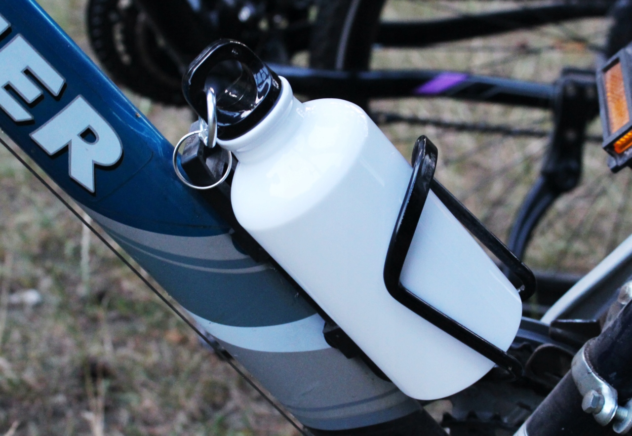 Дополнительным преимуществом является то, что он помещается в клетку для бутылок на велосипеде. Бутылку также можно использовать во время поездки в горы или прогулки.