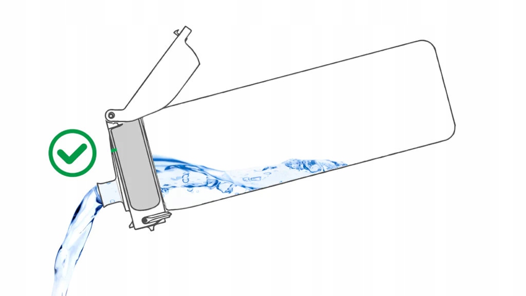 Крышка позволяет вам держать мундштук в гигиене и чистоте. Пружины открывают заслонку после нажатия блокировки блокировки пальцем. Вы откроете бутылку с водой одной рукой.