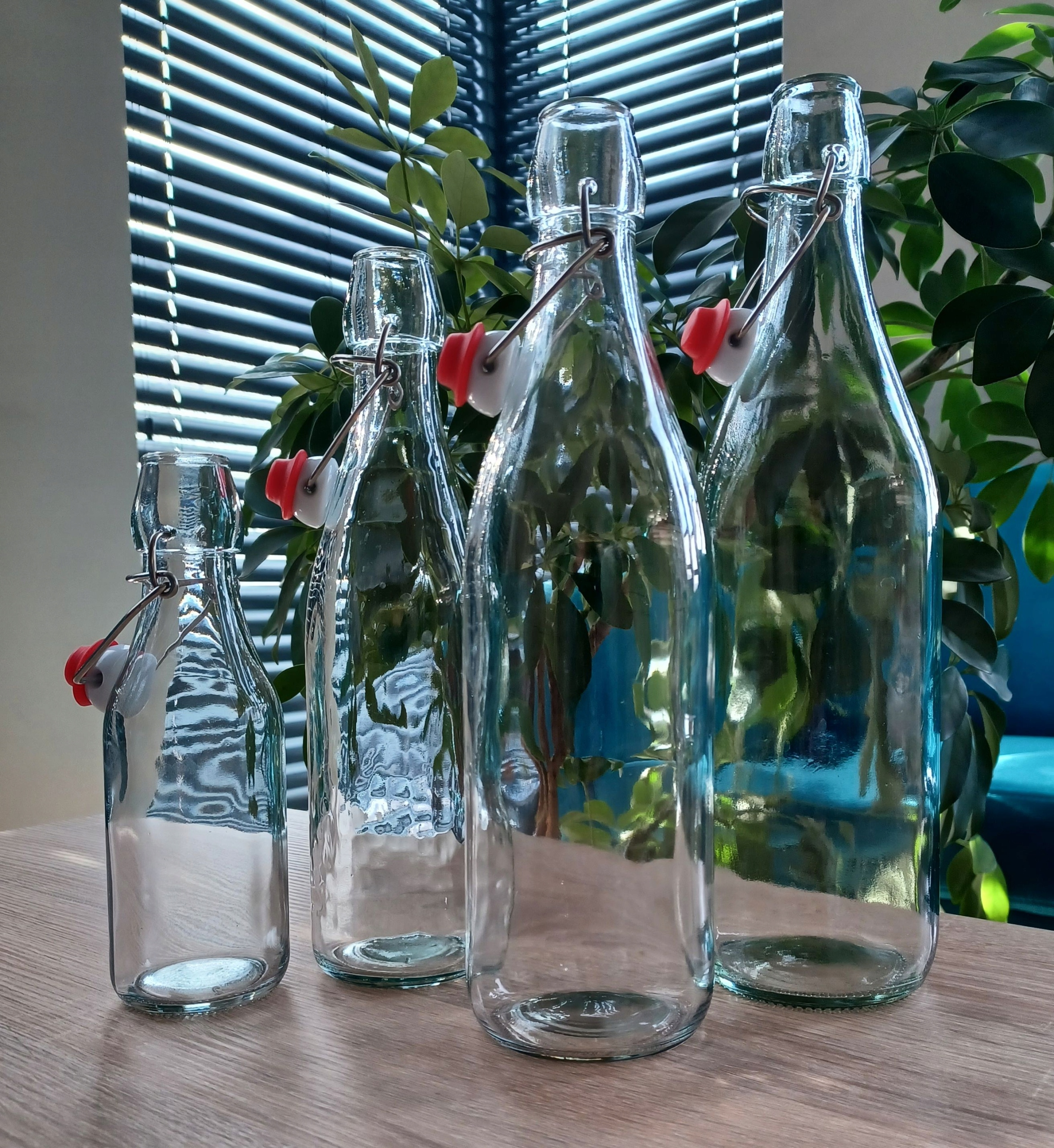 Круглая бутылка объемом 1,0 л закрывается механической пробкой - клипсой, что гарантирует герметичность укупорки. Это керамический зажим, дополнительно закрепленный прокладкой.