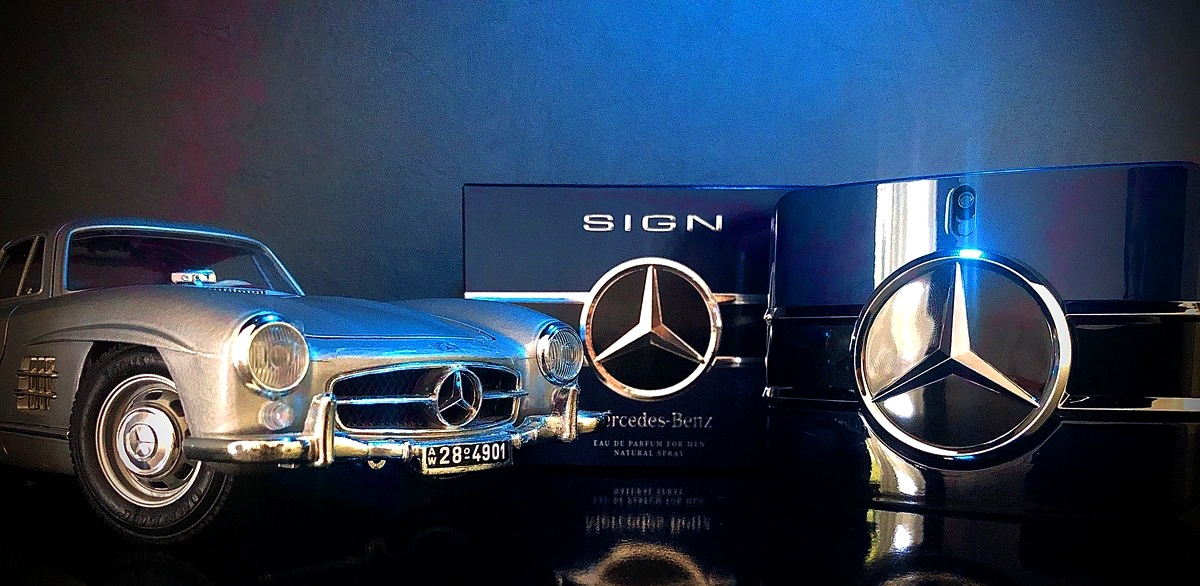 Новый аромат знака Mercedes-Benz, как и легендарная трехпокевая звезда, является символом комбинирования инноваций и совершенства. Знак имеет одинаковую силу и интенсивность. Запах составлен вокруг, кардамон, чье тепло и чувственность подчеркивают богатую гармонию розового перца, тонки, белого мускуса, пачули, а также листья грейпфрута, яблока, оранжевого цветов и фиолетовых
