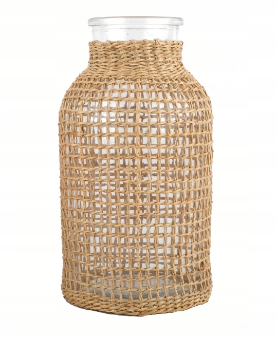 ПЛЯШКА СІРА ВАЗА СКЛО Плетений БОХО ДЛЯ ПАМПИ