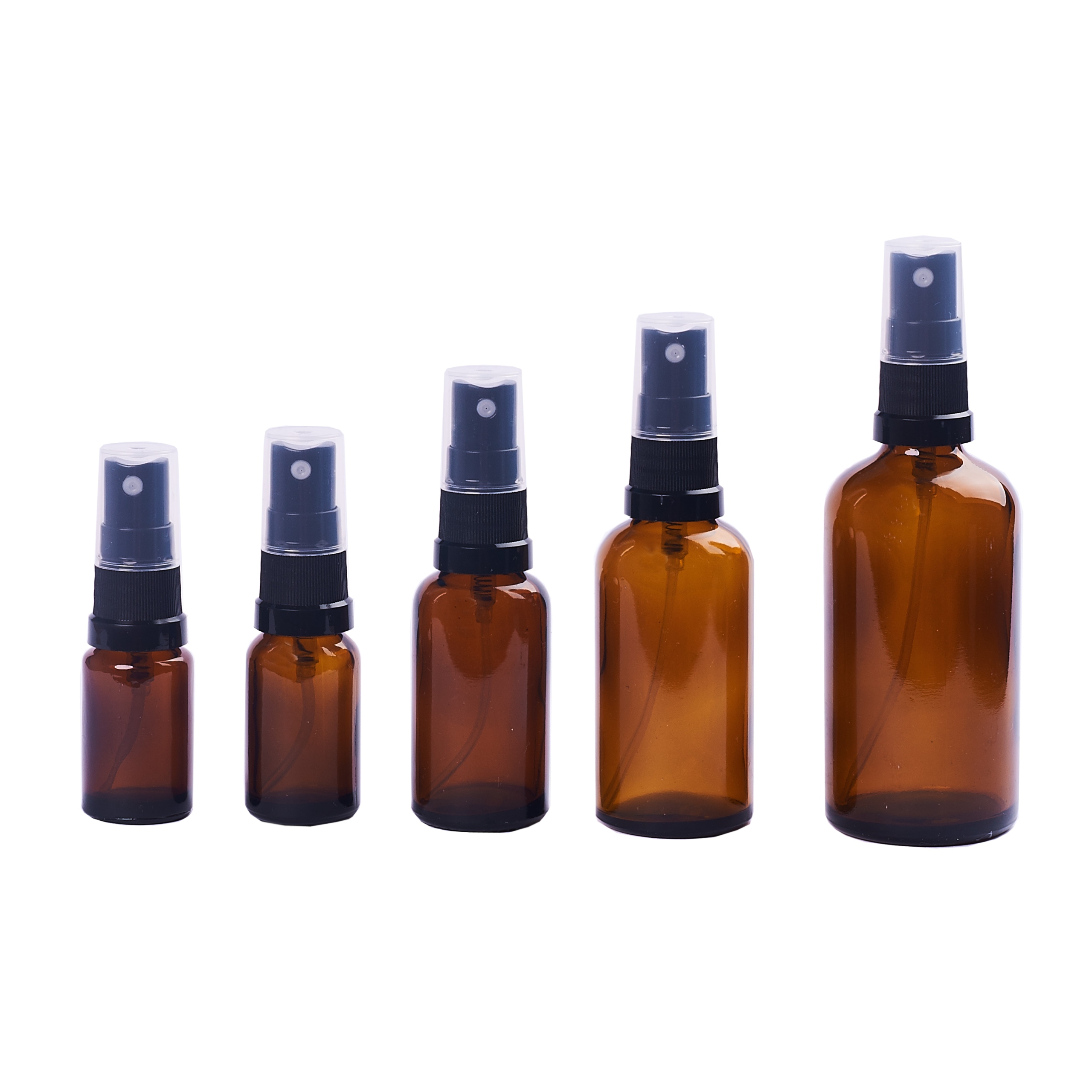 Стеклянный флакон/флакон емкостью 50 мл из толстого стекла, коричневого цвета, с навинчивающимся распылителем и крышкой.