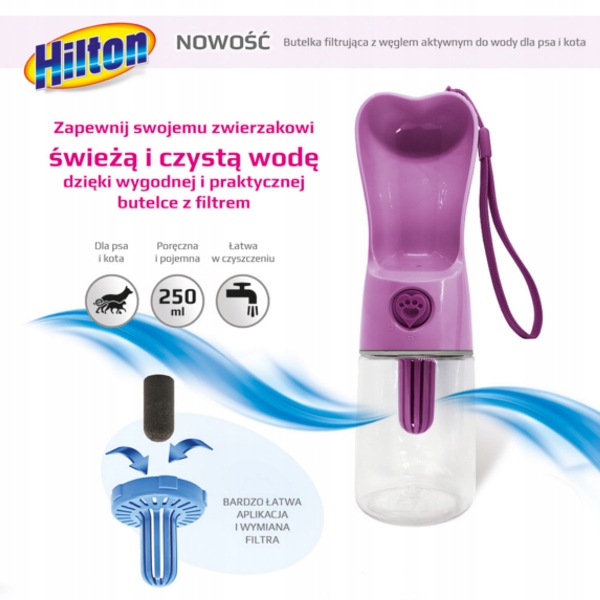 1x Hilton Pet Drink Бутылка 250 мл - бутылка для питья для животных с фильтром h1>